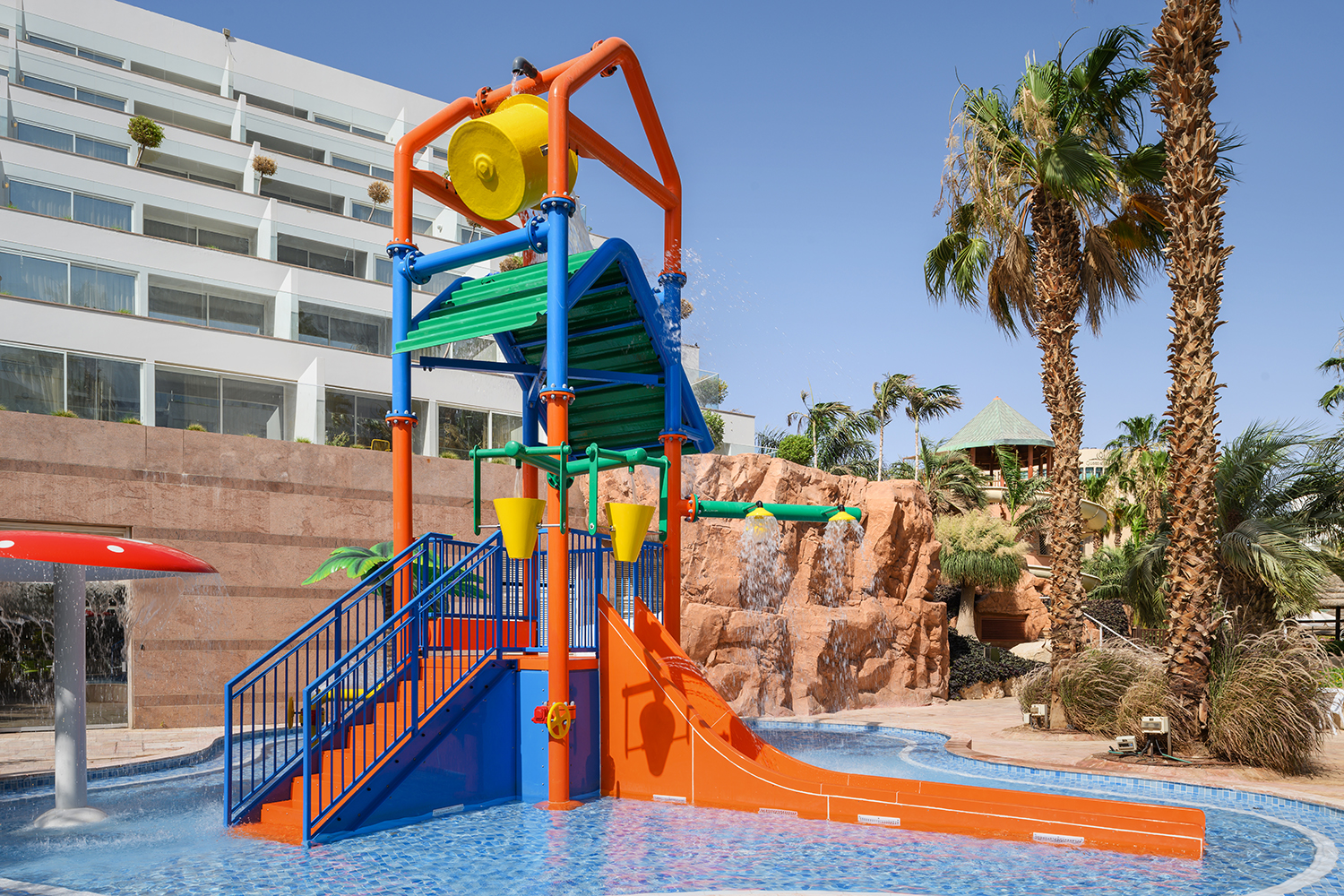 ההורים והילדים נהנים במלון רויאל גארדן מבריכות שחייה יפהפיות וייחודיות, הכוללות מתקני פארק מים עם מגלשות ומזרקות, ובריכת שחייה דמוית חוף ים. לנפוש באילת ולהרגיש בחופשה על אי טרופי.