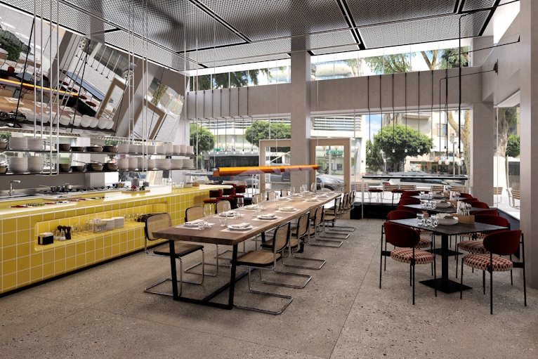 חוויית האירוח נפתחת במתחם הקולינרי שבקומת הכניסה : חלל אירוח דינמי בניצוחו של השף חיים כהן.