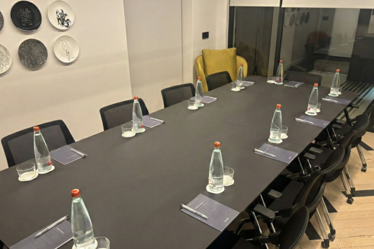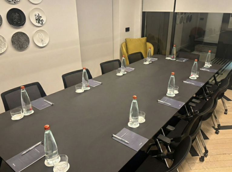 סביבת העבודה המושלמת בלב העיר מחפשים מקום שקט ומעוצב לפגישה הבאה שלכם? חדר הישיבות שלנו מאובזר במלואו ומציע פרטיות מוחלטת במיקום המרכזי ביותר בתל אביב. מתאים לישיבות הנהלה וצוותים של עד 10 משתתפים. כולל אינטרנט מהיר ומסך LCD עם חיבור HDMI להשלמת החוויה, ניתן ליהנות מתפריט כיבוד קל ושתייה.