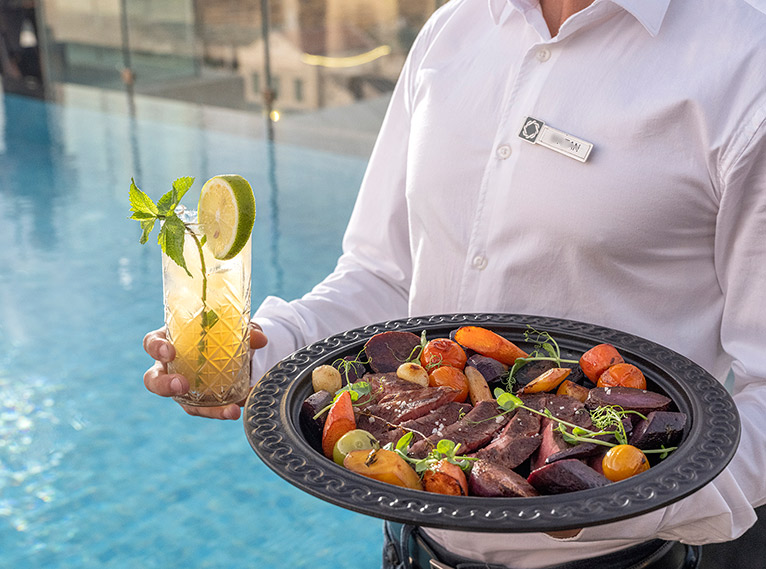 מיקום המסעדה, לצד בריכת הגג של המלון, מאפשר ליהנות מהנוף הנפלא, מאוויר ההרים הצלול, וממוזיקה המלווה את החוויה הקולינרית במקום.